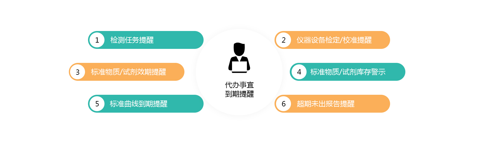 3、工作任務(wù)提醒:實(shí)驗(yàn)室檢測(cè)工作任務(wù)重、環(huán)節(jié)多、時(shí)間跨度長(zhǎng),如何分解任務(wù)并分配到科室或個(gè)人?如何及時(shí)提醒代辦事宜?